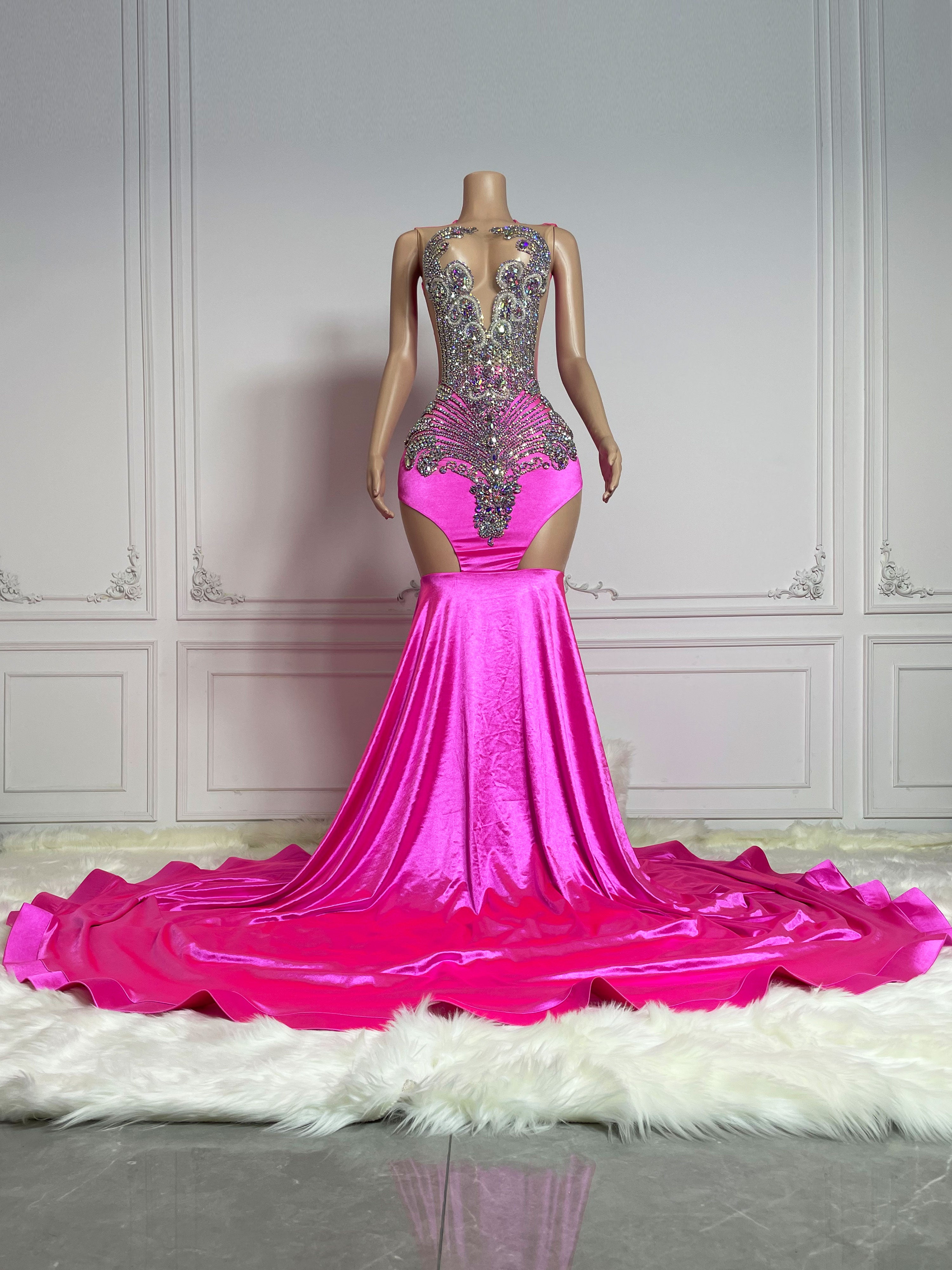 Pink Rhinestone Maxi Gown With Headscarf