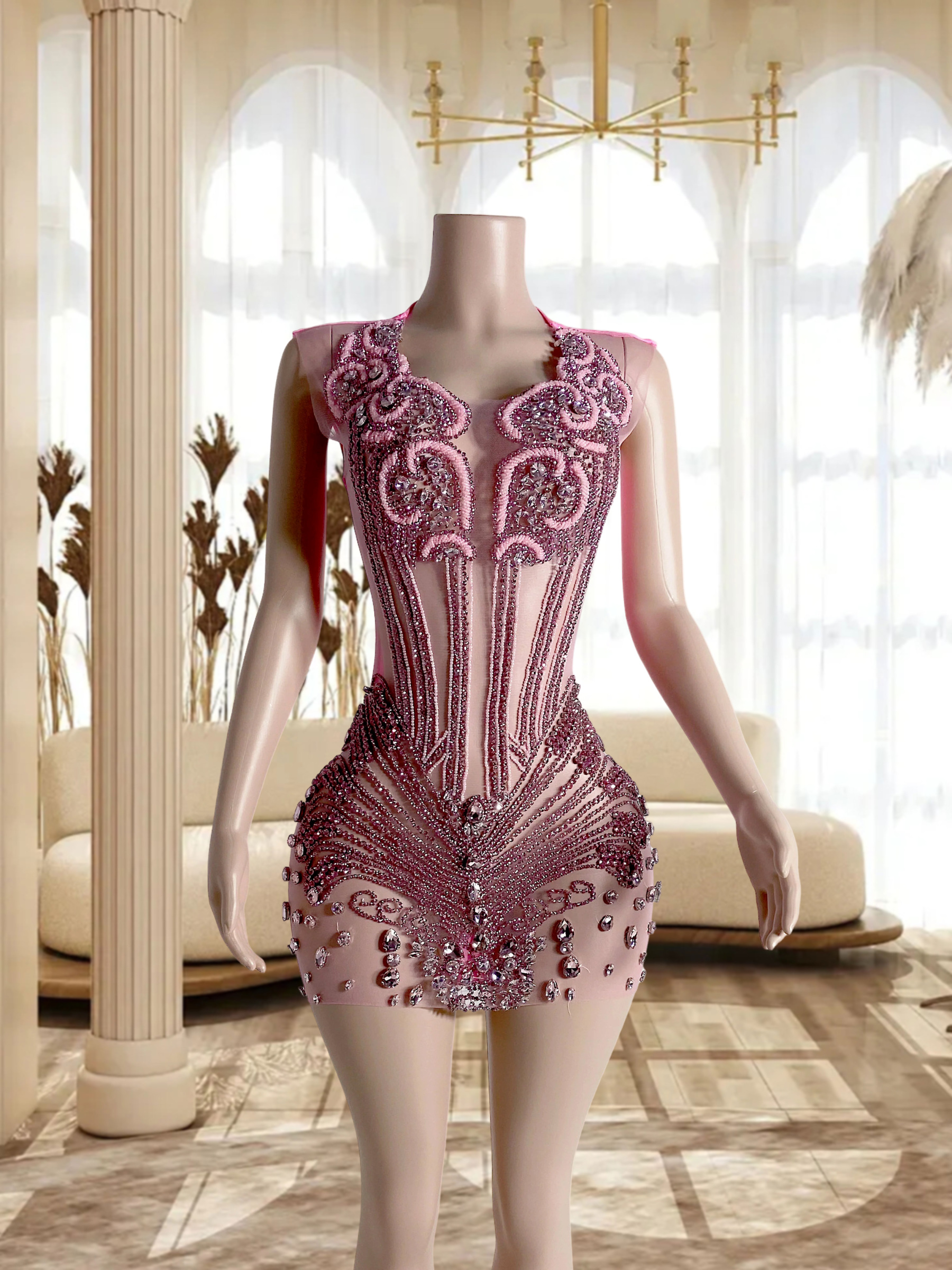 Pink Multi Stones Mini Dress