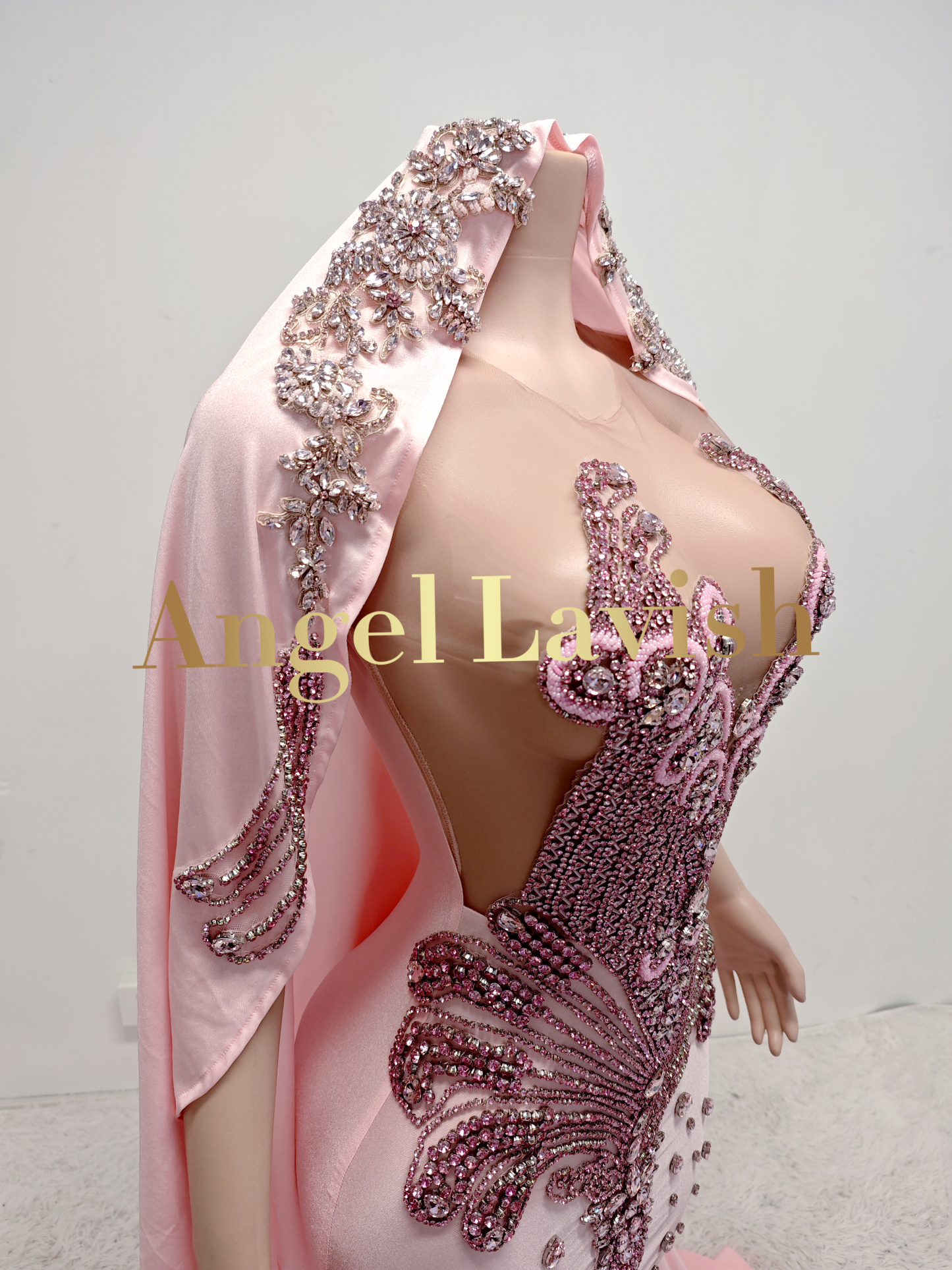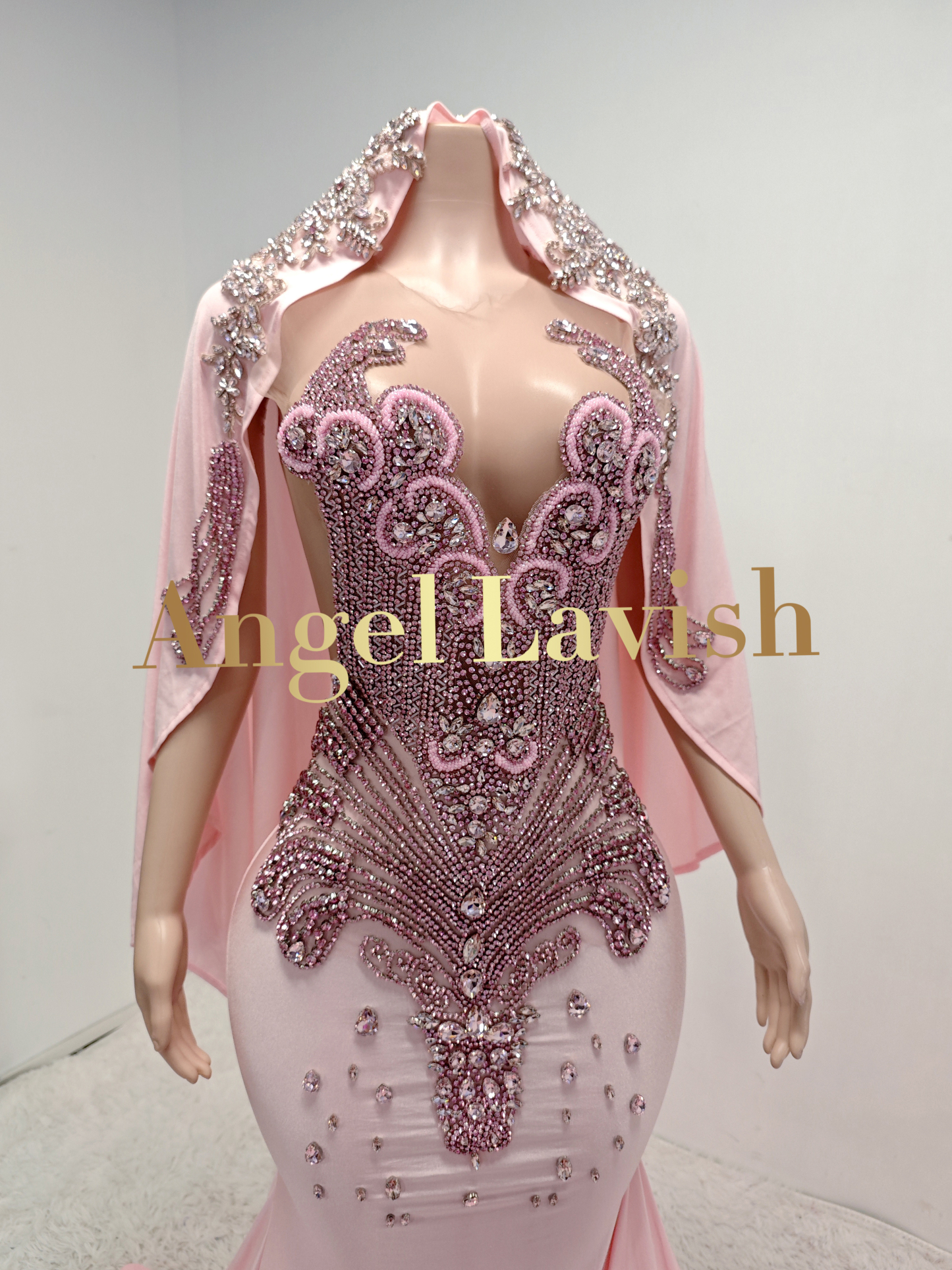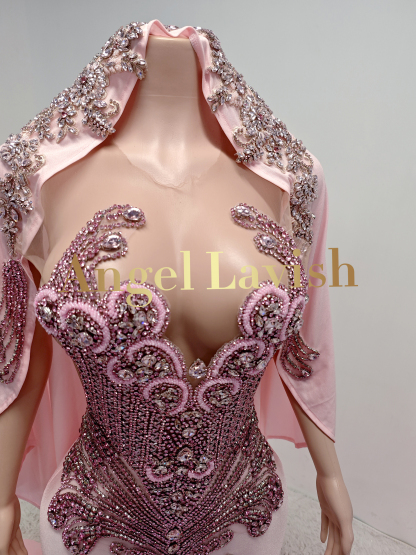 Pink Rhinestone Maxi Gown With Headscarf