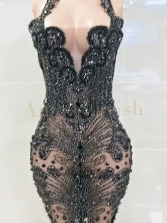 Sleek Black Beaded Mini Dress