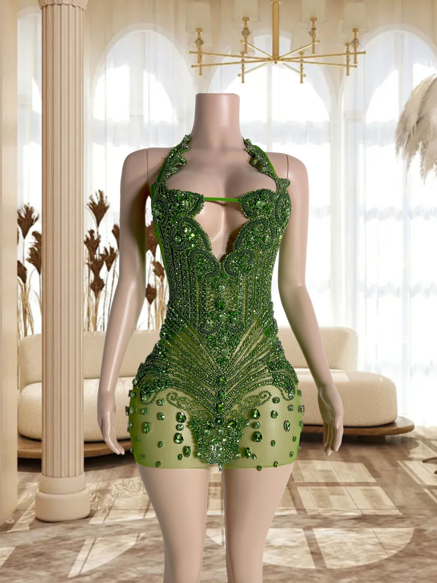Green Rhinestone Collar Charm Dress