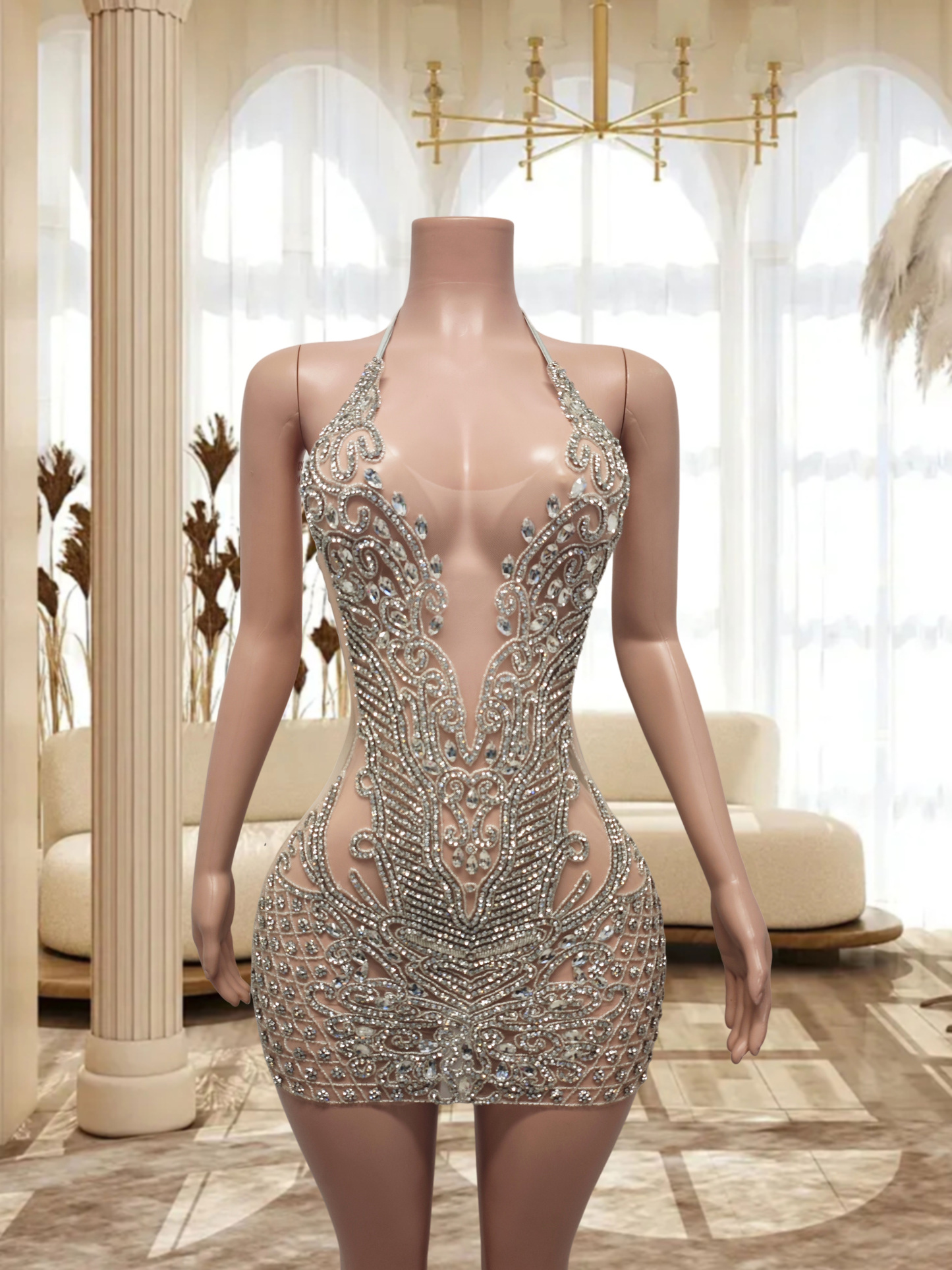 Silver Open Back Rhinestone Dress